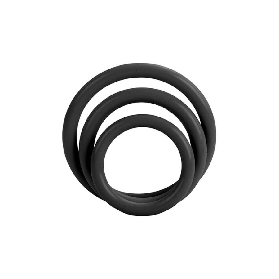Conjunto de três anéis de tamanhos diferentes, com eles você obterá ereções mais firmes e duradouras com orgasmos mais intensos. Também são indicados para controlar a ejaculação precoce. É feito de silicone muito flexível e agradável ao toque. Livre de látex e falate.