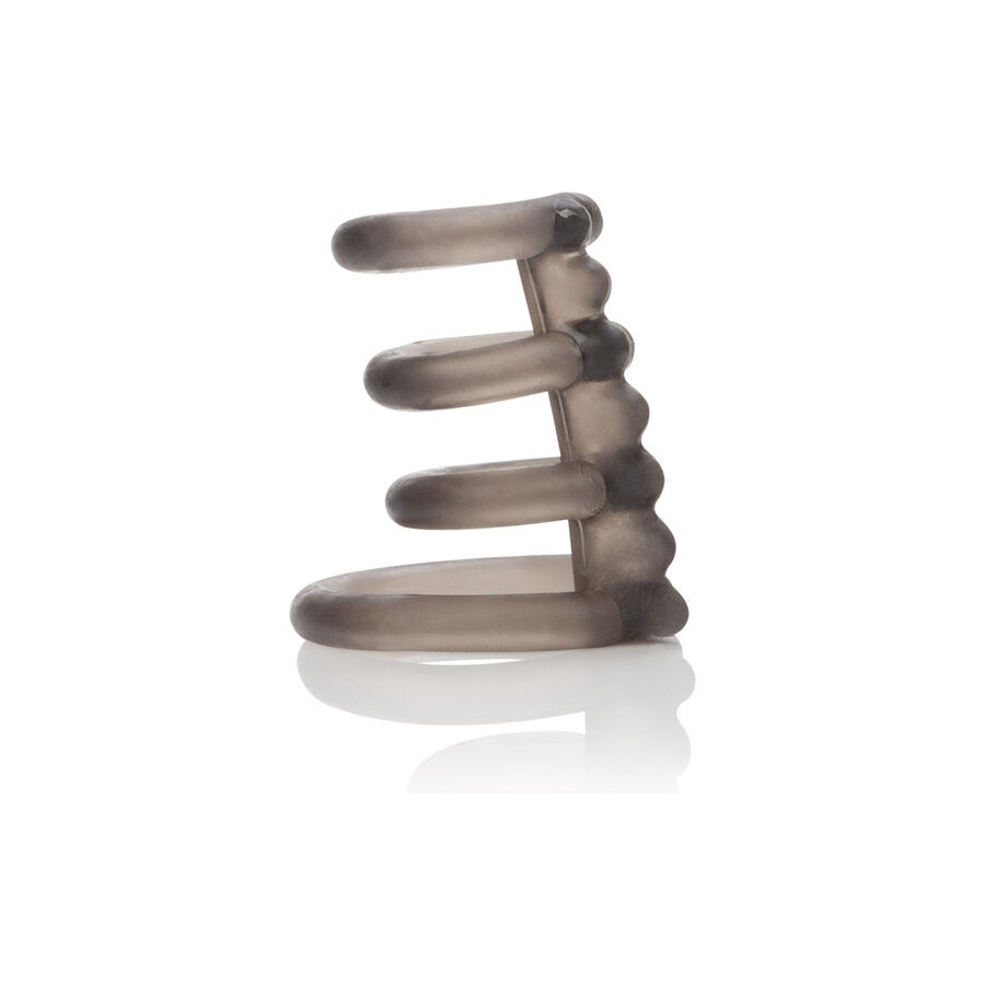 - O anel de suporte consiste em 3 anéis flexíveis que se estendem confortavelmente ao redor da haste do pênis e um anel maior que envolve a base do escroto. O intensificador sensual fornece uma combinação de suporte peniano e testicular para prazer orgástico intensificado e colocação com as mãos livres.
