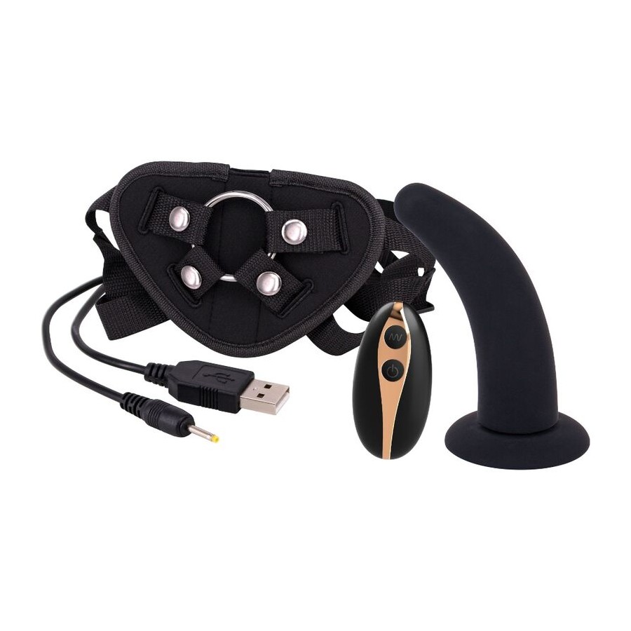 Cinta no arnês com vibrador vibratório de 17,8 cm Controle remoto. O vibrador está equipado com uma ventosa forte para que possa aderir firmemente a superfícies planas