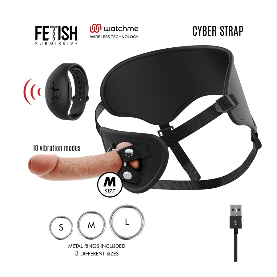 FETISH SUBMISSIVE CYBER STRAP - ARNÊS COM TECNOLOGIA DILDO WATCHME M DE CONTROLE REMOTO