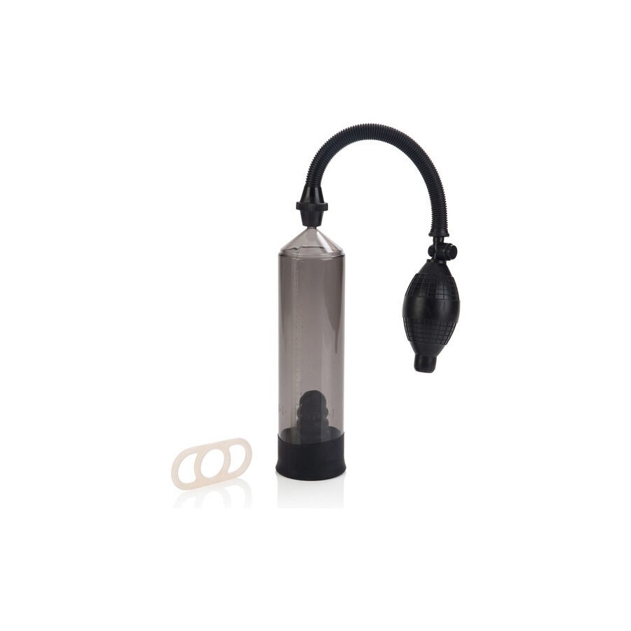 - Inclui um anel de silicone para a base do pênis, para mantê-lo ereto, uma vez finalizada a utilização da bomba.
