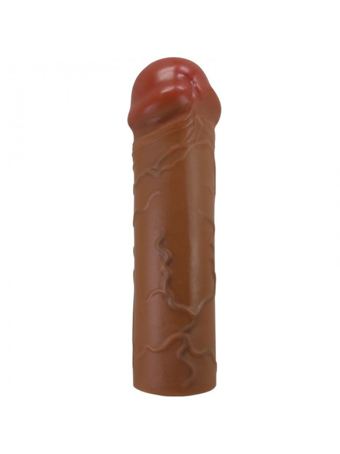 LINDO AMOR BI-026252-1 Vá um pouco mais para dar prazer ao seu parceiro quando você colocar esta manga de pênis extensora de ereção. Oferecendo um centímetro extra de comprimento e um crescimento de circunferência, seu material de toque real e detalhes realistas criam uma sensação de preenchimento realista. Projetado para se encaixar confortavelmente no pênis do usuário, melhorar sua pegada e retardar a ejaculação, o canal interno suave mantém a brincadeira confortável e prazerosa. Só não se esqueça de cobrir o interior e o exterior do brinquedo com lubrificante à base de água antes de usar.