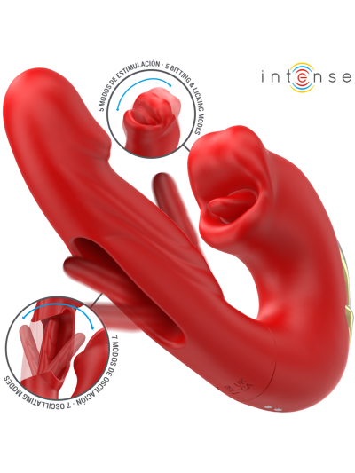 INTENSE - NATHY DOUBLE VIBRATOR WITH MULTIFUNCTION STIMULATING MOUTH RED
