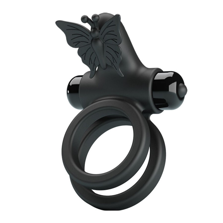 PRETTY LOVE - ANEL VIBRADOR DUPLO COM ESTIMULADOR PRETO