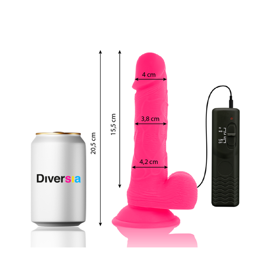 DIVERSIA - FLEXIBLE VIBRATING DILDO PINK 20.5 CM -O- 4.2 CM