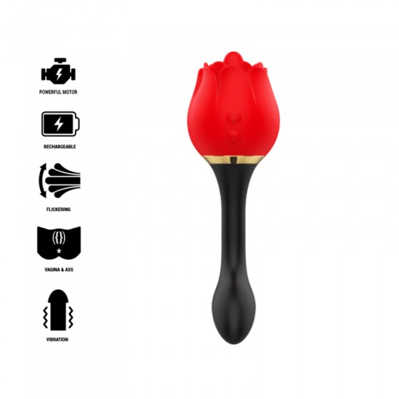 Formas de jogar Coloque a rosa de silicone firmemente na palma da sua mão. Coloque MIA DOUBLE PLEASURE no seu clitóris ou outras zonas erógenas e desfrute das vibrações profundas. Explore diferentes ambientes e posições para adaptar sua experiência. É perfeito para estimular o clitóris e também usar a alça vibratória para a região anal. Estimulação dupla e poderosa.