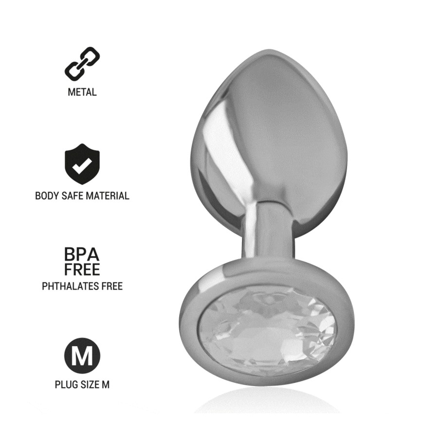 INTENSE - ALUMINUM METAL ANAL PLUG WITH SILVER CRYSTAL SIZE M