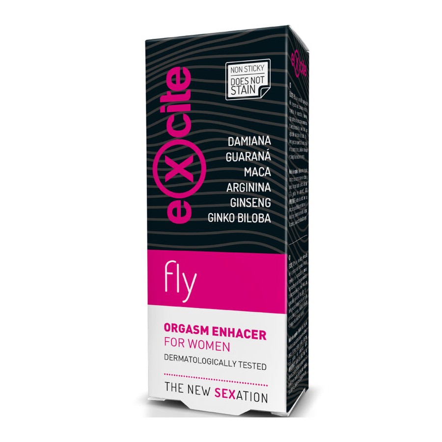 EXCITE FLY é o inimitável potenciador do orgasmo que combina extratos de plantas com propriedades revigorantes reconhecidas com uma ação hiperemiada avermelhamento da pele o que você vai notar? uma agradável sensação de calor, frio ou formigueiro que aumentará a sensibilidade das zonas íntimas, ideal para estimular e prolongar a relação do casal.