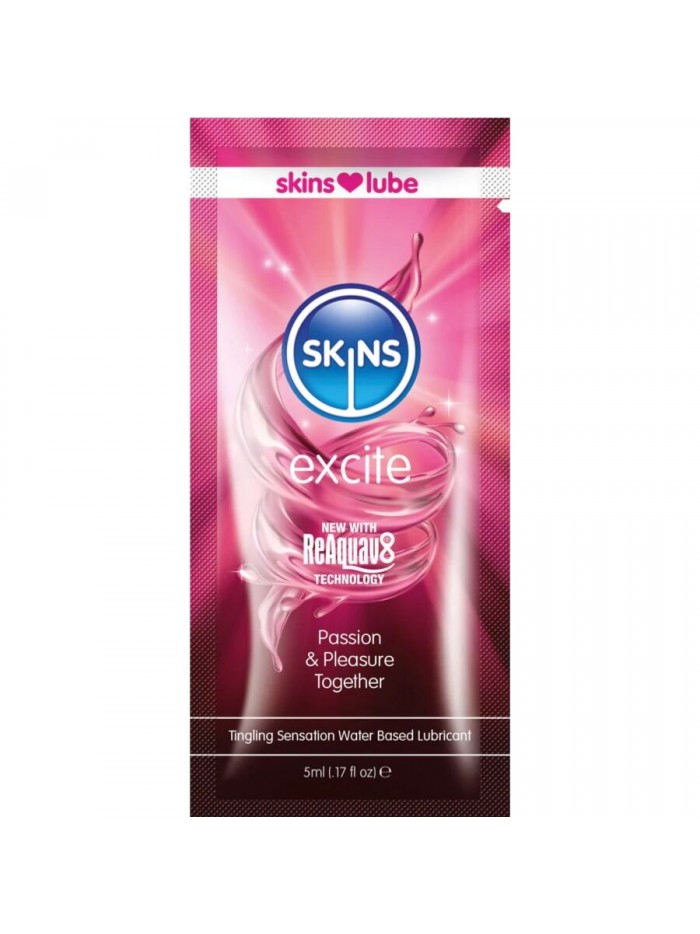 O Skins Excite oferece toda a diversão e os benefícios do lubrificante Skins Aqua, mas com um toque extra de prazer. Com L-arginina, aumenta o fluxo sanguíneo na área de aplicação. Isso intensifica a sensação nas mulheres e proporciona uma ereção mais firme nos homens. Repleto de ingredientes naturais que farão suas zonas erógenas vibrarem. Pegamos a fórmula do Skins Aqua e adicionamos as propriedades afrodisíacas do trevo-vermelho e do ginkgo biloba. O resultado: um lubrificante com uma irresistível sensação de formigamento que aumenta a excitação e leva você a novas alturas. Paixão e prazer em perfeita harmonia!