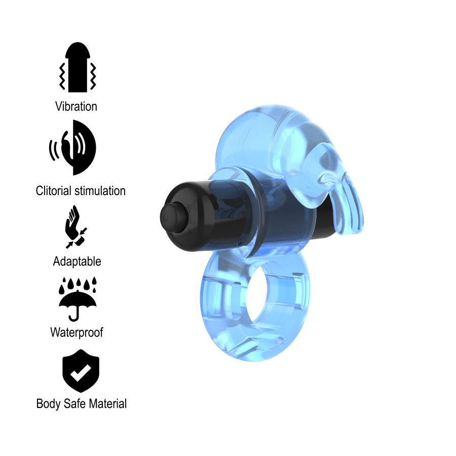 Rabbit Ring by Intense™ oferece maior firmeza durante a relação sexual: O anel peniano vibratório é colocado sobre o pênis não ereto, que é então aumentado para um novo tamanho devido ao seu intenso efeito de obstrução do sangue. O anel peniano estimula ambos os membros do casal graças à vibração que pode ser facilmente controlada com um botão. É flexível e adapta-se perfeitamente e de forma excitante ao pénis. Graças ao efeito de estagnação do sangue, o anel oferece ao seu usuário uma ereção mais firme e maior resistência, além de retardar a ejaculação.