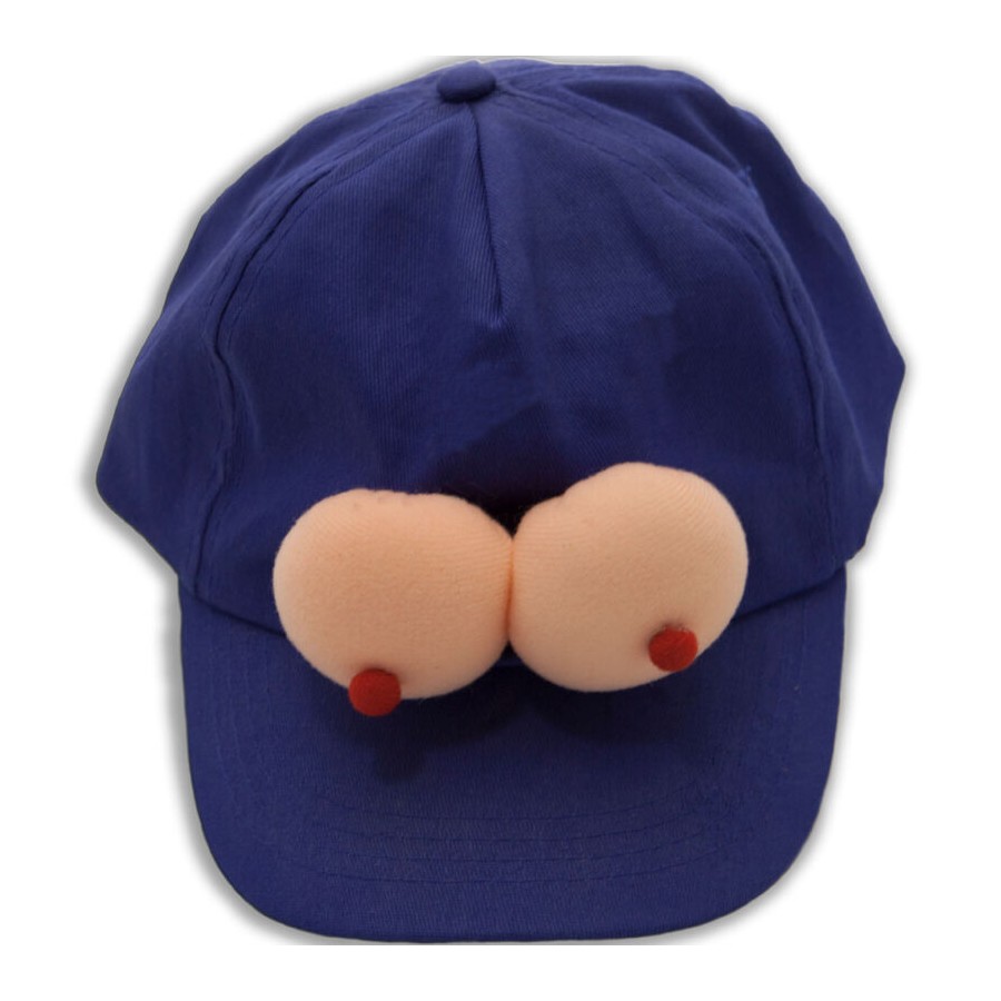É um boné azul de alta qualidade com peitos na testa, ideal para animar suas festas, despedidas, aniversários e até mesmo como presente.
