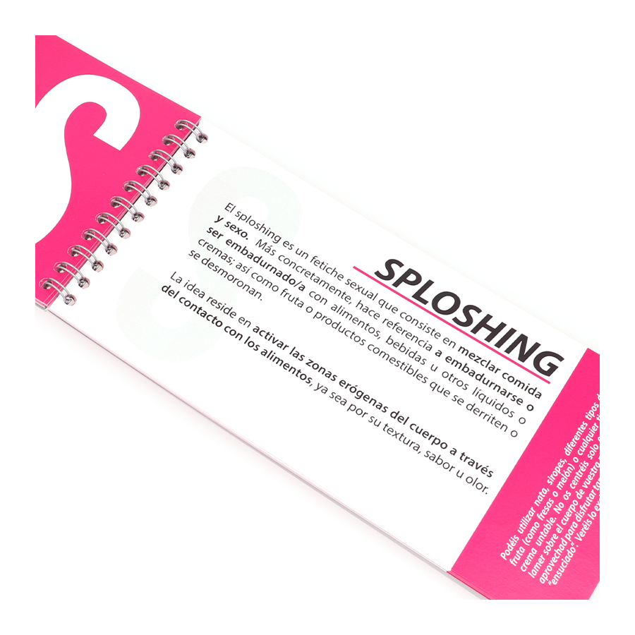 Além do termo e sua definição, em cada página encontraremos um teste a realizar. Estas práticas são o objetivo de completar o jogo, e você deve realizar todas elas (exceto aqueles que desejam pular com as comodidades disponíveis). Cada página é uma nova surpresa e oportunidade para se divertir, aprender coisas novas e gozar em pares.