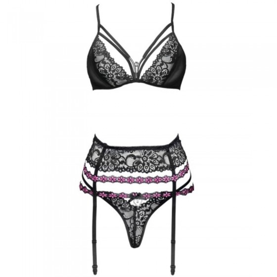 LIVCO CORSETTI FASHION - SNEHANA LC 90443 BRA + GARTER BELT + PANTY BLACK L/XL