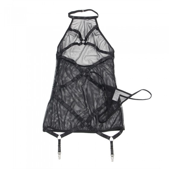 SUBLLIME - VESTIDO HALTER NECK TRANSPARENTE PRETO L/XL