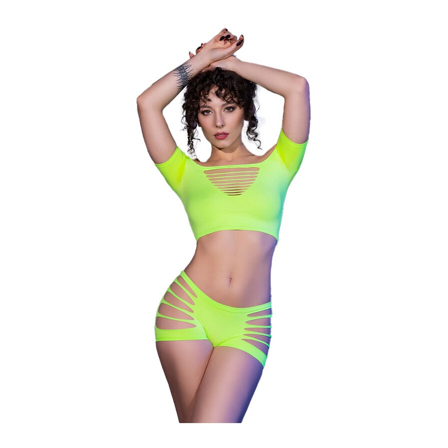 CR 4433 Mergulhe em um mundo de elegância e sensualidade com este charmoso conjunto de top e shorts, pensado para realçar sua feminilidade e despertar paixão. Feito de um material macio, este conjunto é uma declaração ousada de estilo e sedução que vai deixar você desmaiado. sinta-se confiante e poderoso em qualquer ocasião.
