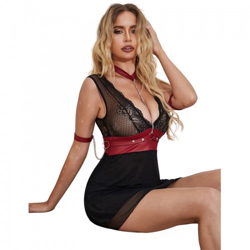 SUBBLIME - 954437 VESTIDO BONDAGE DE RENDA PRETO L/XL