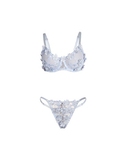 SUBBLIME - 957636 FLOWER EMBROIDERED BRA AND PANTIES SET SKY BLUE L/XL
