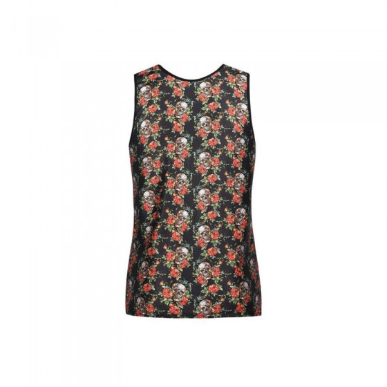 Modal suave de cor transparente com estampado de rosas e caveiras