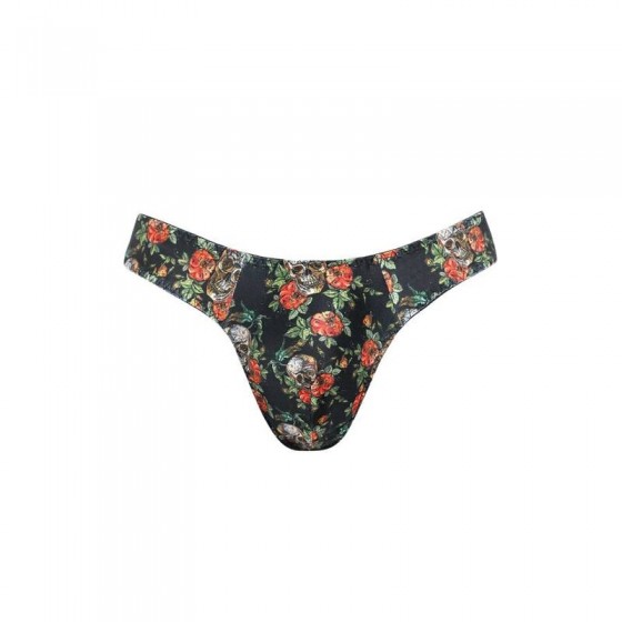 Modal suave de color claro con estampado de rosas y calaveras