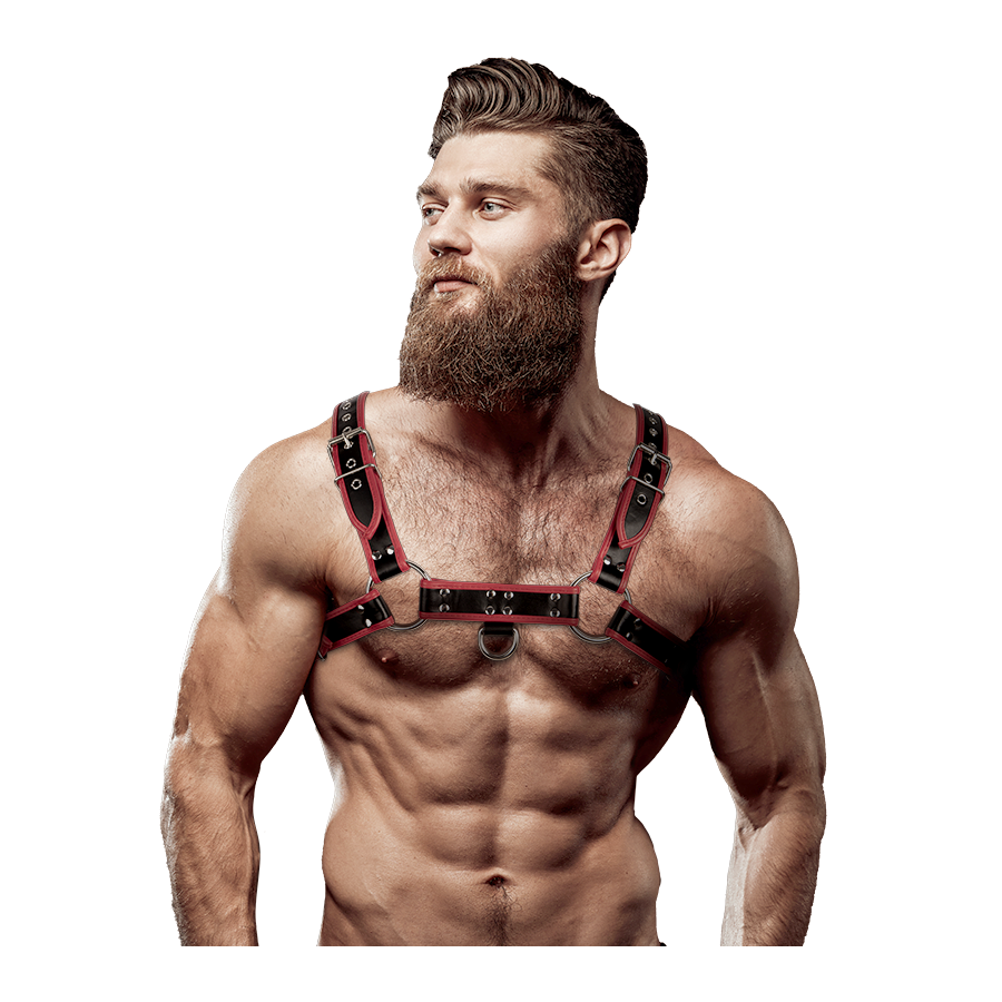 FETISH SUBMISSIVE ATTITUDE - MENS ECO-LEATHER CHEST HARNESS BLACK/RED