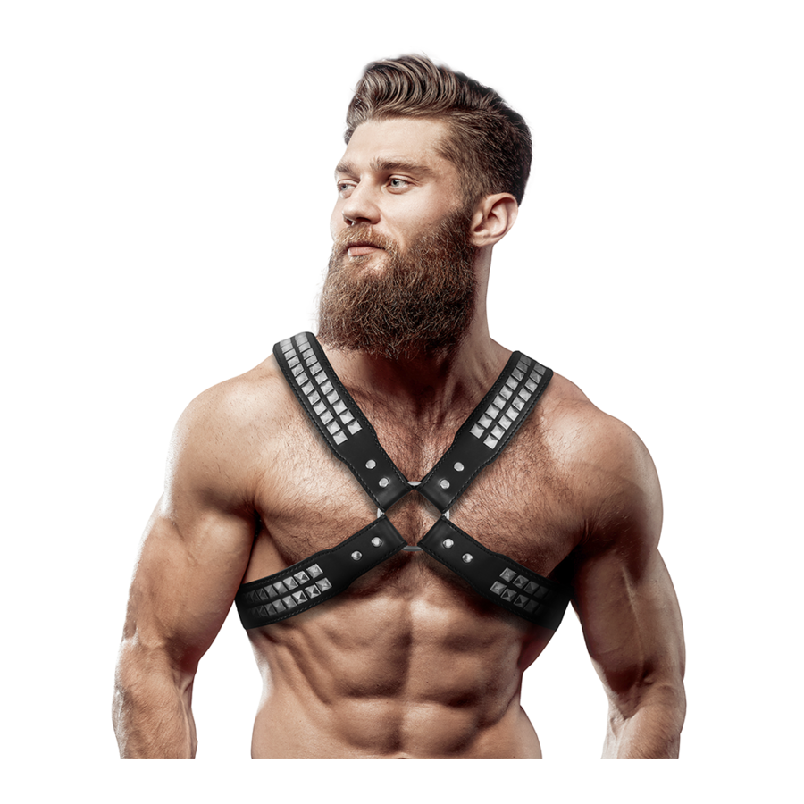 FETISH SUBMISSIVE ATTITUDE - MENS CROSSED CHEST ECO-LEATHER HARNESS WITH RIVETS