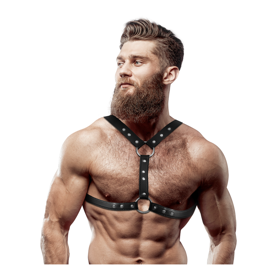 FETISH SUBMISSIVE ATTITUDE - ECO-LEATHER CHEST HARNESS WITH DOUBLE SUPPORT AND STUDS FOR MEN