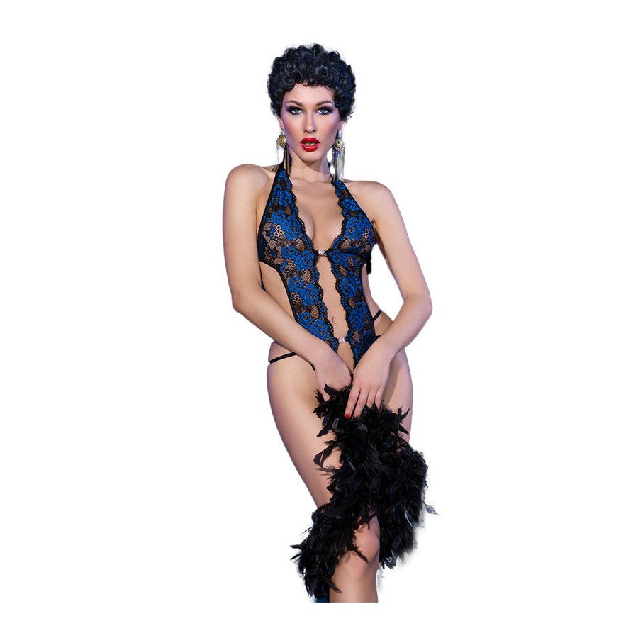 O corpete, confeccionado em delicada renda decorada com lindas flores em tons de preto e azul, acrescenta um toque de charme e elegância à sua figura. Os detalhes florais realçam a feminilidade e sensualidade da peça, enquanto os rendas provocantes realçam a sua silhueta com um toque de sedução irresistível. O suporte para pescoço e costas não só proporciona um ajuste seguro e confortável, mas também adiciona um elemento de estilo e sofisticação à roupa. Esses detalhes garantem que o body se ajuste perfeitamente ao seu corpo, destacando suas curvas de forma sedutora e cativante.
