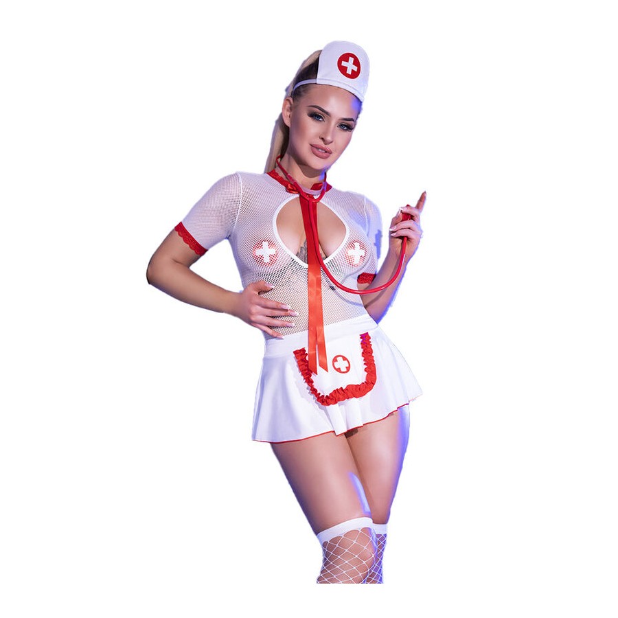 CR 4365 o traje de enfermeira é completo e pronto para ser usado em festas à fantasia, eventos temáticos ou qualquer ocasião onde se busque um look médico sensual e autêntico.