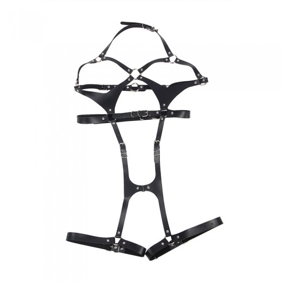 SUBBLIME - FULL BODY HARNESS WITH LEATHER BUCKLES BLACK ONE SIZE