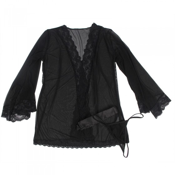 SUBBLIME - ROBE EM TECIDO TRANSPARENTE COM DETALHE DE RENDA PRETO L/XL