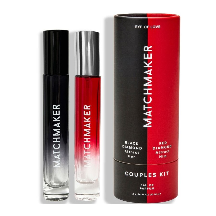 Kit para casais que contém um Matchmarker de cada um, para seduzi-lo e outro para Ela. Elegante frasco de colônia de feromônios com design sofisticado e muito leve em formato de viagem.