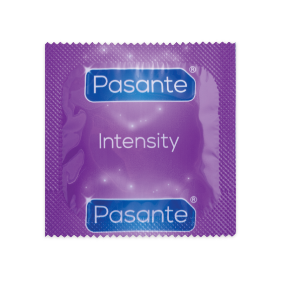 Os preservativos Pasante Ribs Dots Intensity são preservativos cônicos e texturizados com nervuras e pontos pronunciados. De cor natural.