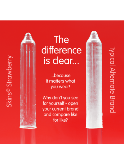 Apresentamos o nosso novo pacote com 4 preservativos de Morango, com um design elegante e pronto para usar, e até 33% mais preservativos do que o líder de mercado. Adicione um sabor frutado clássico à sua linha de produtos com os preservativos de Morango da Skins. Feitos com látex natural premium para uma sensação transparente e natural, estes preservativos são projetados para proporcionar uma sensação de segunda pele sem comprometer a resistência ou a segurança. Ideais para varejistas que buscam oferecer uma opção de sabor popular e confiável para maior intimidade e proteção.