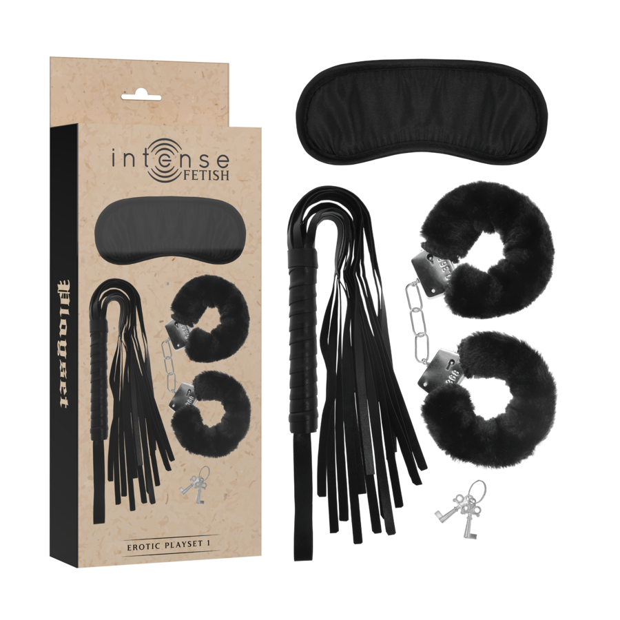 INTENSE - FETISH PLAYSET ERÓTICO 1 COM ALGEMAS, MSCARA CEGA E FLOGGER