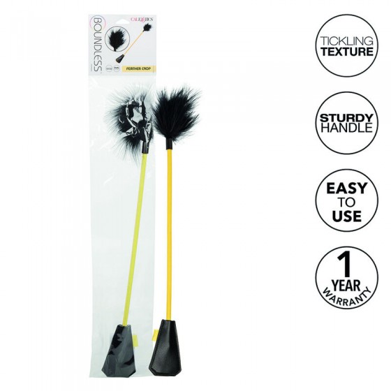 Impertinente e agradável combinam perfeitamente no glamour Boundless Feather Crop. Este divertido corte duplo BDSM tem tudo a ver com Feito para brincar como um corte ousado de pele sintética e uma pena que faz cócegas. Alterne sem esforço entre feroz e provocante, enquanto você usa o corte emocionante para plantar pênis formigantes ou fazer cócegas em seu submisso com as penas sedutoras. Eleva os sentidos e confunde os limites do prazer e da dor.