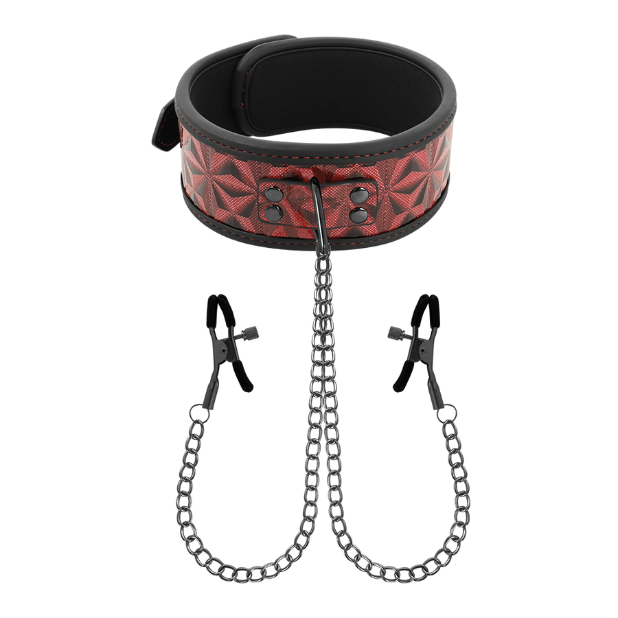 Pronto para o máximo prazer?, preso por uma corrente de prata a pinças de mamilo. Um emocionante jogo de bondage especialmente para eles. As pinças e o colar são ajustáveis tanto em medida como em tensão. É perfeito para estimular os mamilos e muitas outras áreas sensíveis.