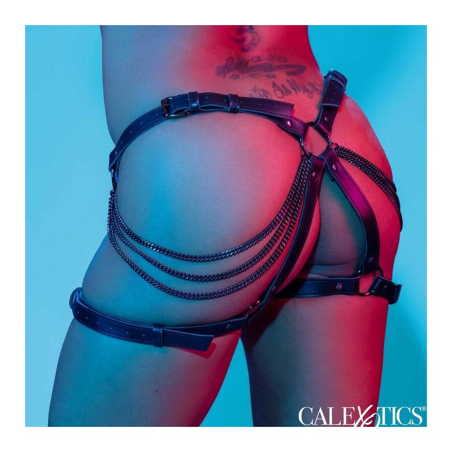 Eleve o prazer com o arnês para coxas Multi Chain da coleção Euphoria: um acessório premium para desejos intensificados. Ideal para momentos íntimos ou para adicionar estilo festivo, este arnês para coxas é uma afirmação ousada. As alças ajustáveis na cintura e nas coxas garantem um ajuste confortável com fecho de fivela. O design contemporâneo melhora a durabilidade e a satisfação geral. Aproveite a sensação luxuosa do interior em veludo macio e a sofisticação do exterior em couro vegano. A construção robusta, com duplo acolchoamento e costura, garante conforto em encontros apaixonantes. Os detalhes metálicos que não mancham adicionam glamour, criando um apelo visualmente deslumbrante. O design versátil cabe na maioria dos tamanhos. Liberte os seus desejos com o arnês para coxas Multi Chain da coleção Euphoria.