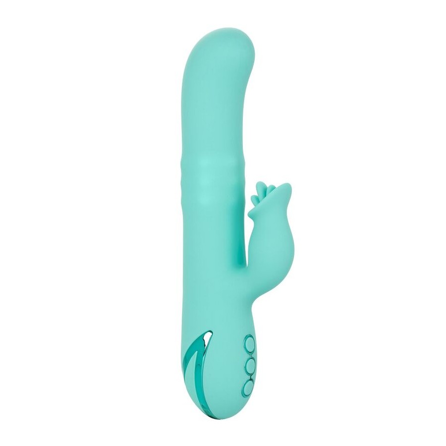 Mergulhe em piscinas de prazer e fantasias ensolaradas com o estiloso California Dreaming Bel Air Bombshell. O luxuoso massageador tem 10 funções de vibração intensa, 3 funções de rotação de eixo independentes e um teaser triplo exclusivo para uma experiência de prazer única.