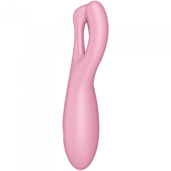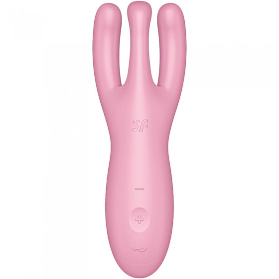 O Satisfyer Threesome 4 possui três braços, um motor potente e um design inovador. É um vibrador de contato que estimula o clitóris e os lábios.